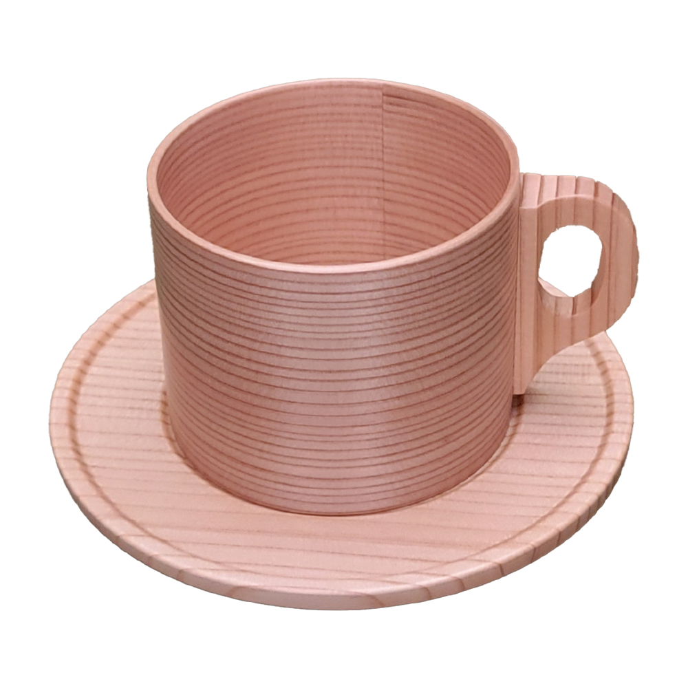 株式会社大館工芸社の「曲物カップ」は、伝統の曲げわっぱ技法で仕上げたカップとソーサーのセットです。 木の持つ「熱しにくく冷めにくい」特性を活かし、温かいコーヒーを注いでも温度を保ちながら、持っても熱くならない優れた使い心地を実現。 見た目の美しさと実用性を兼ね備えた逸品です。